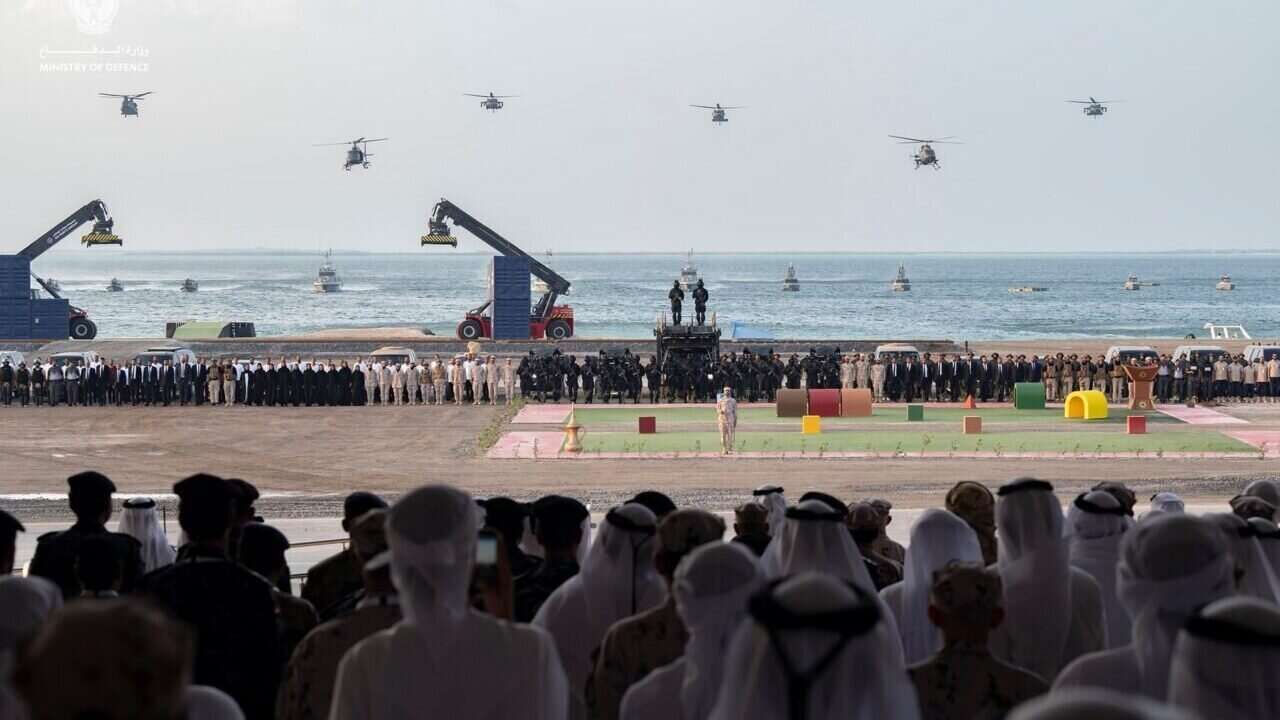 نظمت وزارة الدفاع الإماراتية النسخة التاسعة من العرض العسكري "حصن الاتحاد" في جزيرة ياس بأبوظبي يوم الأحد بحضور رئيس دولة الإمارات والقائد الأعلى للقوات المسلحة الإماراتية الشيخ محمد بن زايد.