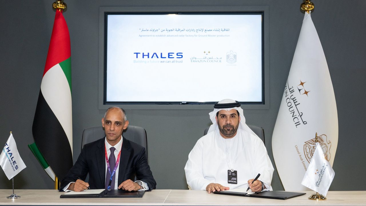 وقع مجلس التوازن وشركة "تاليس" الفرنسية للدفاع والتكنولوجيا، اتفاقية تعاون استراتيجية لإنتاج رادارات مراقبة جوية متقدمة من سلسلة "جراوند ماستر" (Ground Master) في دولة الإمارات، في إطار دعم الإنتاج المحلي وتطوير القدرات الوطنية في قطاع الدفاع.
