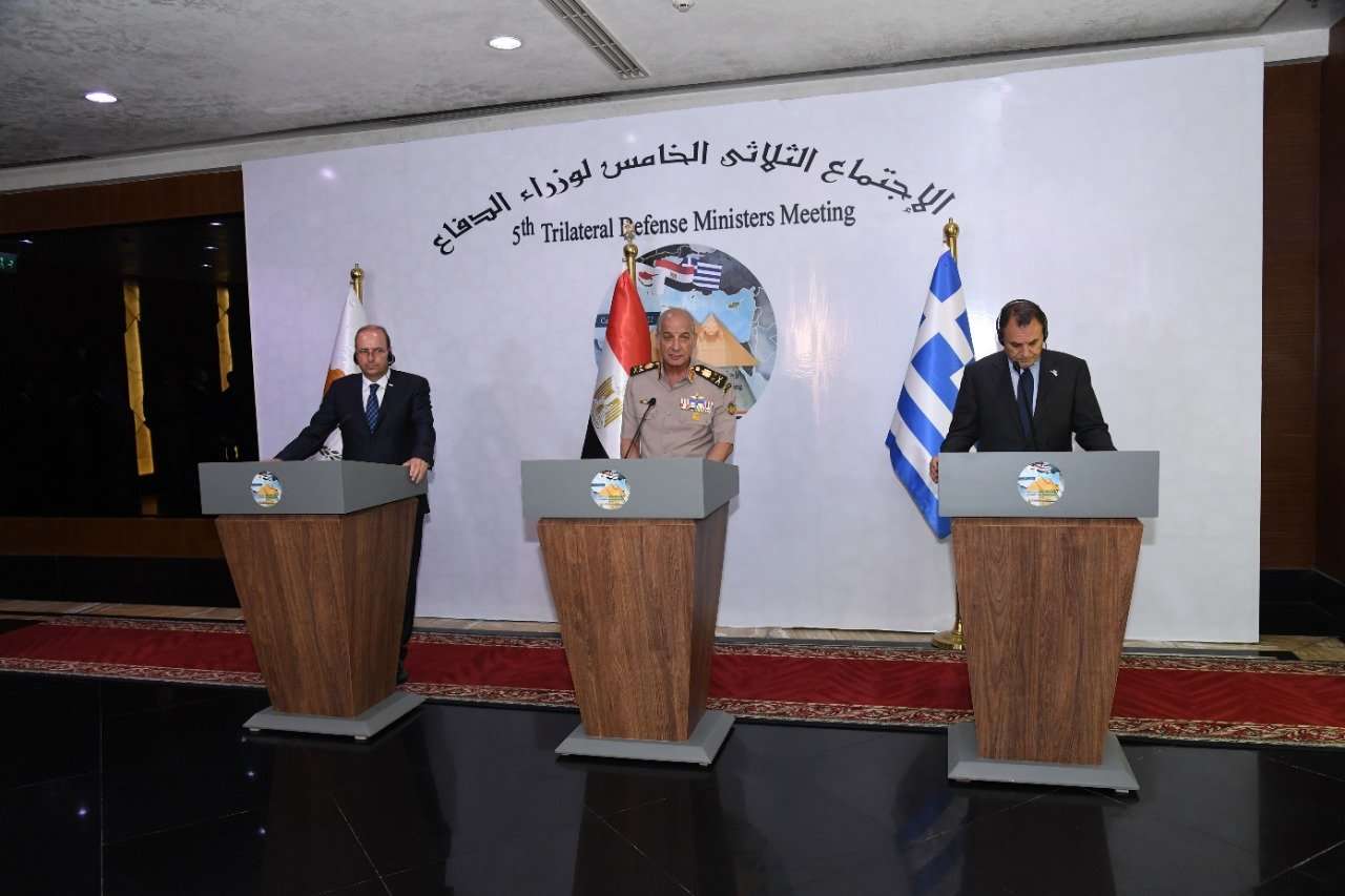 استضافت مصر الاجتماع الثلاثى الخامس لوزراء دفاع مصر وقبرص واليونان لبحث علاقات التعاون العسكرى المشترك، بحضور عدد من قادة القوات المسلحة المصرية والقبرصية واليونانية، حيث تناول الاجتماع عددا من الموضوعات والقضايا التى تمس المصالح المشتركة للدول الثلاث.