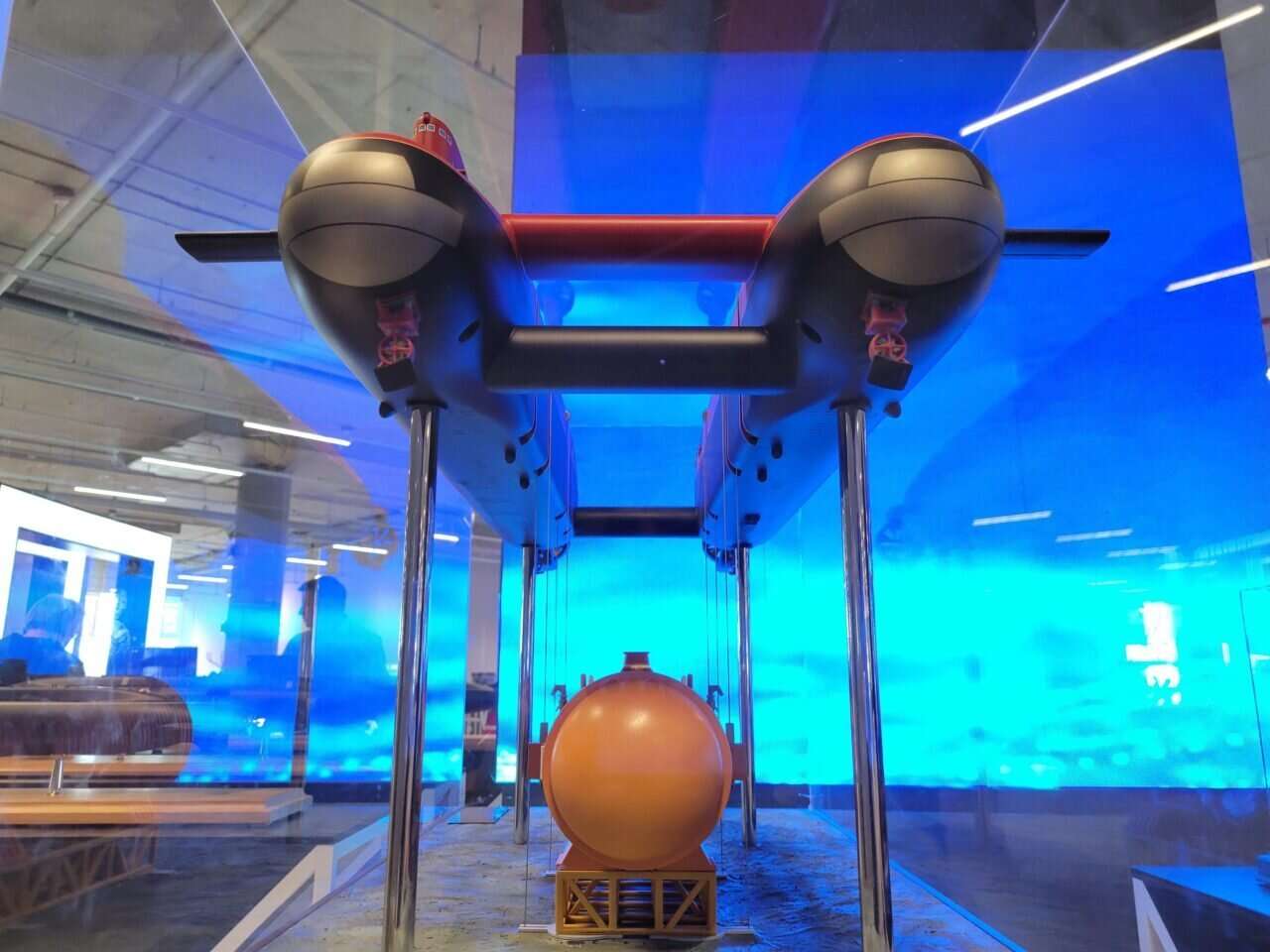 هناك عدد كبير من مجسمات الغواصات العسكرية والمدنية الحديثة والمسيّرات البحرية والجوية.