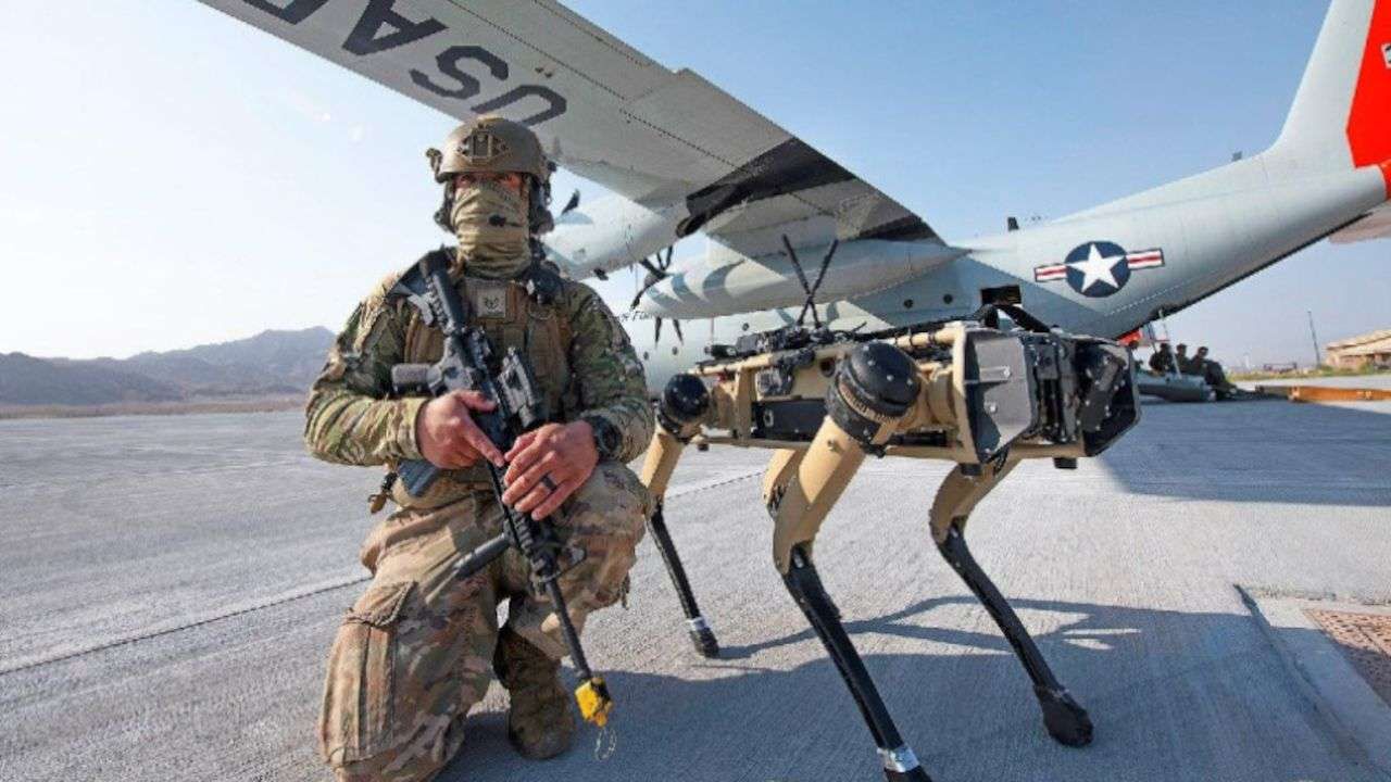 بالإضافة إلى ذلك تم اختبار روبوتات رباعية الأرجل التي أطلق عليها "كلاب آلية" فيما بعد، في قاعدة نيليس الجوية في ولاية نيفادا. تم تطوير الكلاب الآلية من قبل شركة Ghost Robotics.