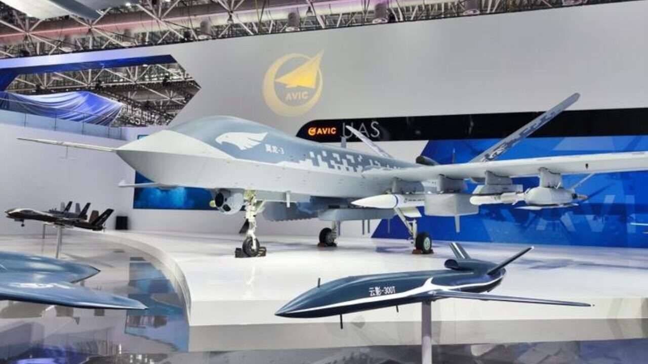 عرض التلفزيون الصيني مسيّرة Wing Loong-3 صينية الصنع قادرة على حمل 2000 كيلوغرام من الصواريخ العسكرية جو – أرض.