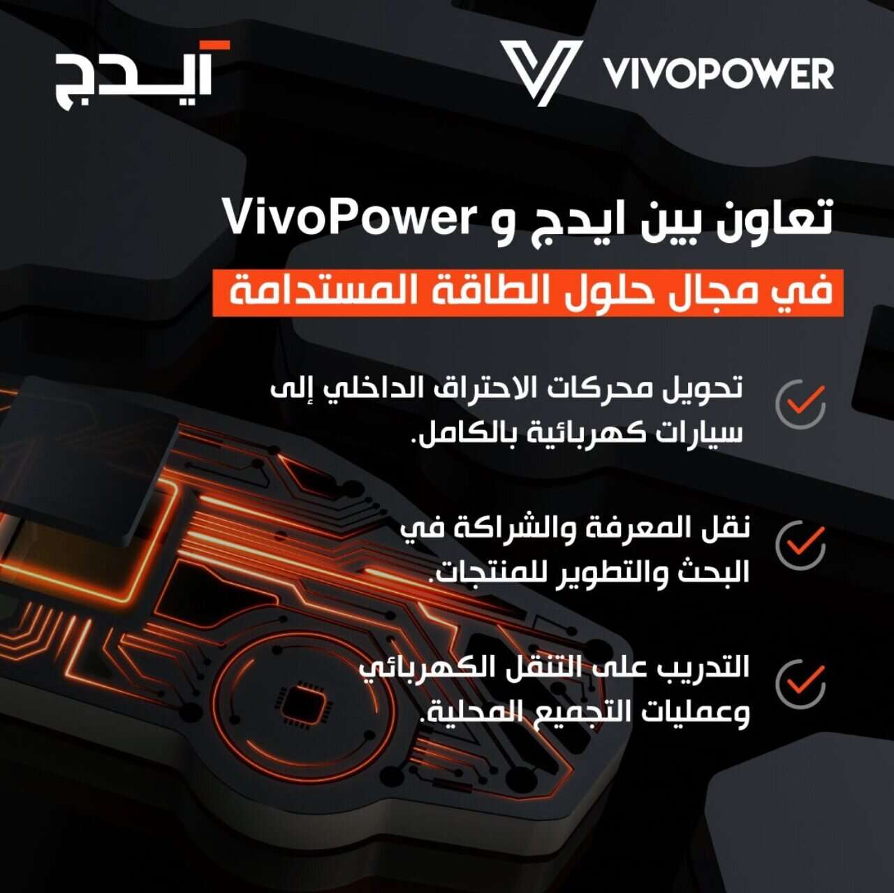 أعلنت اليوم شركة "الطيف"، المزود الرائد لخدمات الصيانة والإصلاح والعمرة للمعدات العسكرية في دولة الإمارات والتابعة لمجموعة "ايدج"، عن توقيع مذكرة تفاهم مع شركة Tembo ELV BV (Tembo) التابعة للشركة العالمية لحلول الطاقة المستدامة (VivoPower Interational PLC) (VivoPower) لتعزيز التعاون في مجال حلول الطاقة المستدامة.