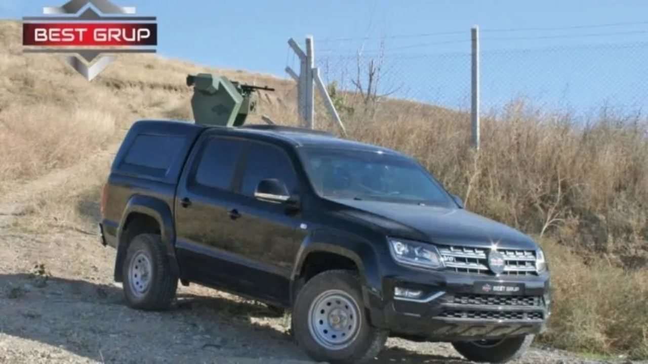 تعرض شركة بيست كروب (BEST GRUP)، أحد الشركات التركية الرائدة في مجال صناعة الدفاع، شاحنة مدرعة صغيرة رباعية الدفع مزودة بمحطة سلاح تحمل اسم (كورلاب) تمتاز بانه يتم التحكم فيها عن بُعد ويمكن إخفائها.