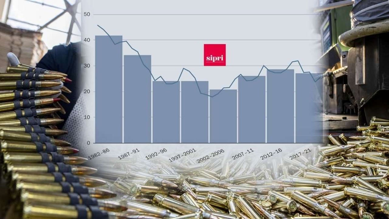 واليوم نشر المعهد تقريرا يقارن بين المبيعات العالمية للأسلحة والمعدات العسكرية في الفترة 2012-2016 والفترة من 2017-2021.