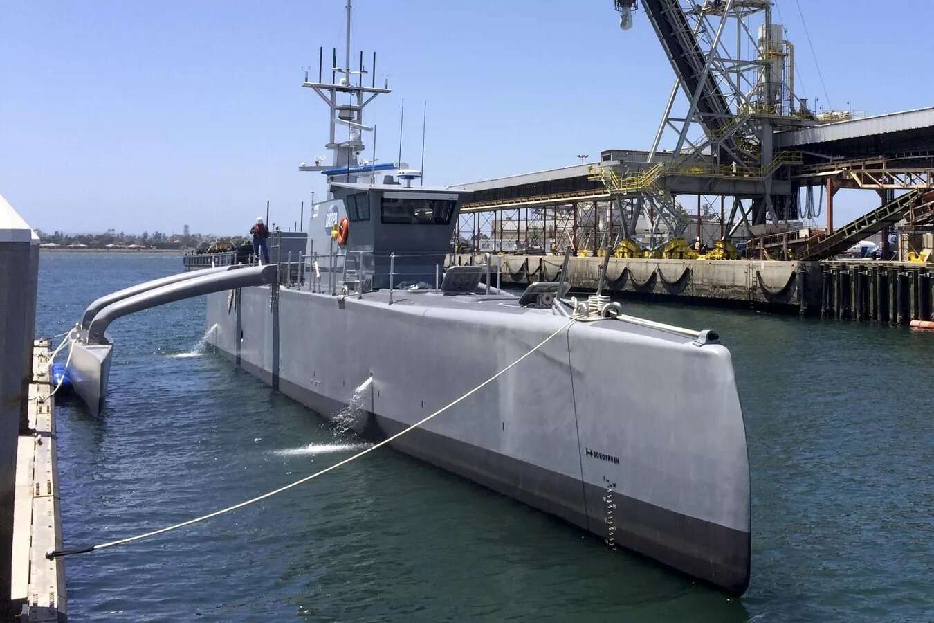 صدرت هذه الصورة في 2 مايو/ أيار عام 2016، حيث تظهر السفينة "سي هانتر" (Sea Hunter)، وهي سفينة بحرية أمريكية ذاتية القيادة، تجلس في محطة بحرية في سان دييغو. يختبر "البنتاغون" السفينة السطحية غير المأهولة، المصممة للإبحار آلاف الأميال في البحر دون وجود فرد واحد من أفراد الطاقم على متنها.