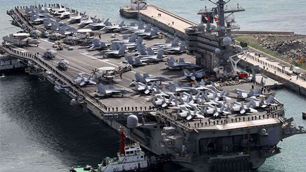 واجتمع الجانبان على متن حاملة الطائرات الأمريكية التي وصلت إلى المياه في وقت سابق من هذا الأسبوع في استعراض للقوة العسكرية الأمريكية.