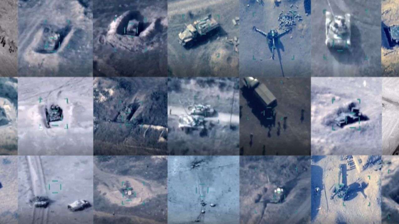 بثت وزارة الدفاع الأذربيجانية مشاهد لتدمير عدد كبير من الآليات والتجهيزات العسكرية الأرمينية بواسطة مسيرات "بيرقدار" تركية الصنع، كما يظهر في المشاهد وبوضوح سقوط عدد كبير من القتلى والجرحى في صفوف الجيش الأرميني.