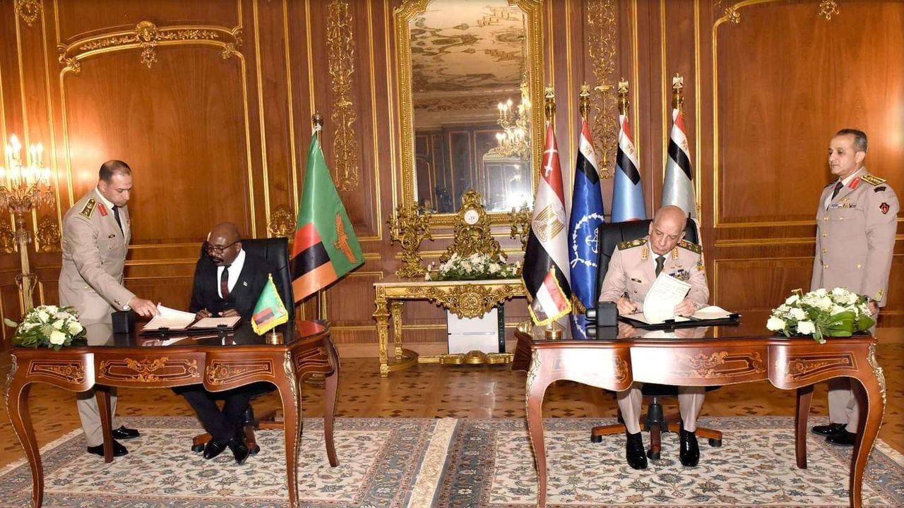 وقع وزير الدفاع المصري محمد زكي، مع نظيره الزامبي أمبروز لويجي لوفوما، مذكرة تفاهم في مجال التعاون والتدريب العسكري.